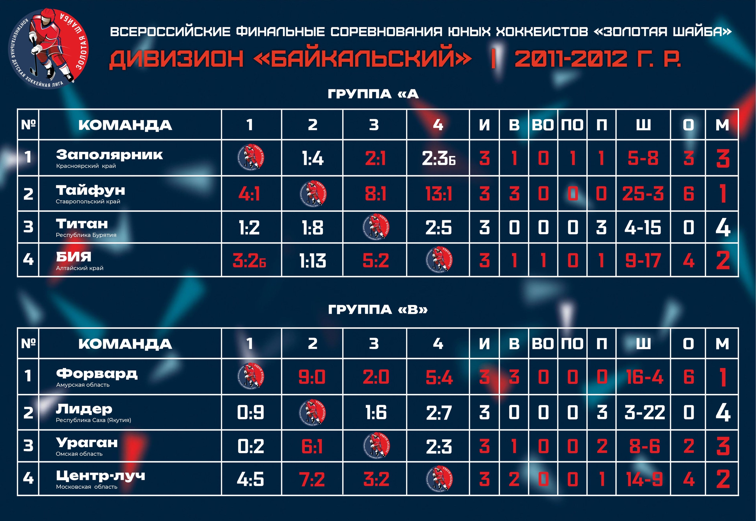 Результаты группового этапа Всероссийских финальных соревнований юных хоккеистов «Золотая шайба» среди 2011-2012 годов рождения, дивизион «Байкальский»