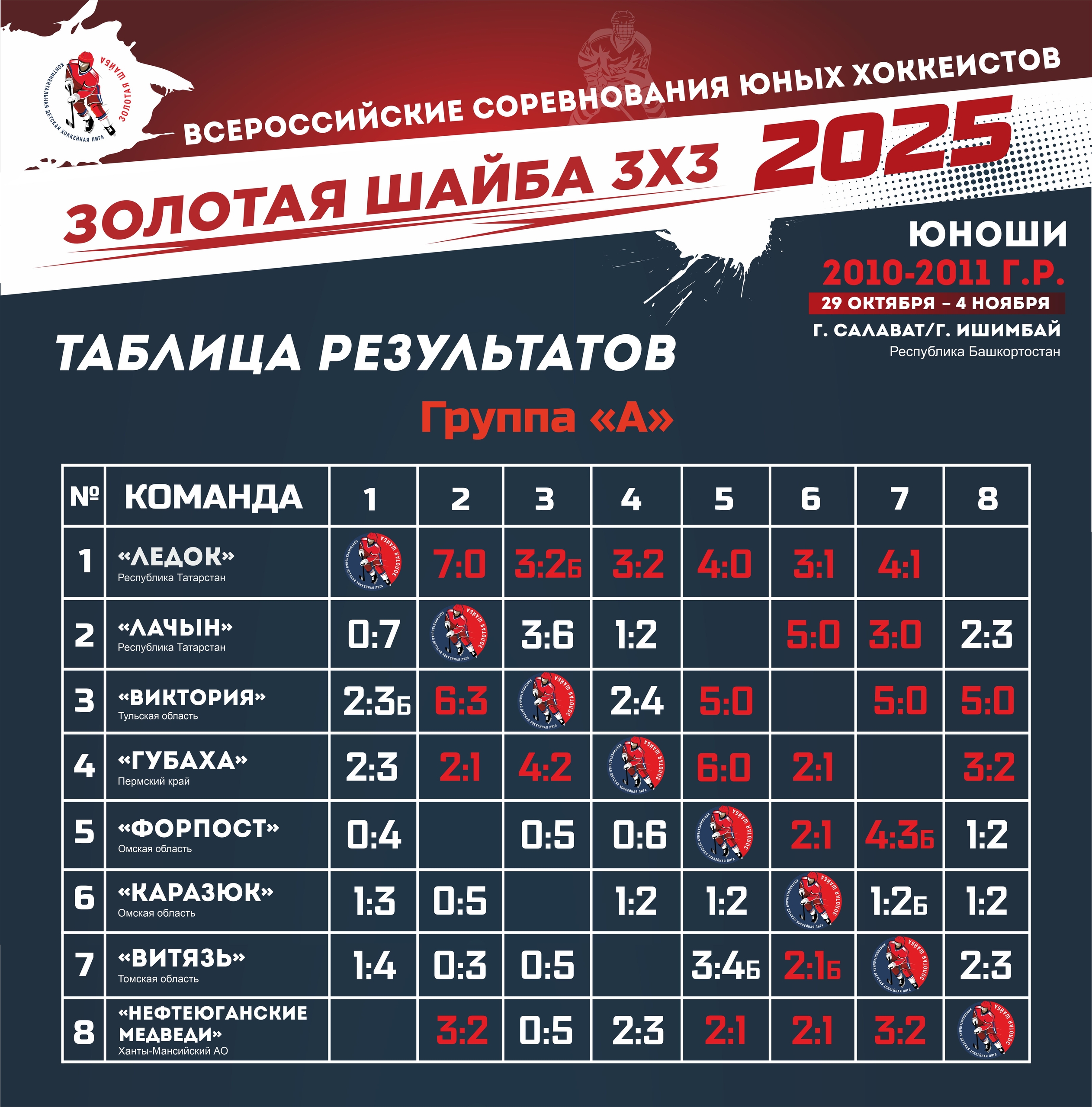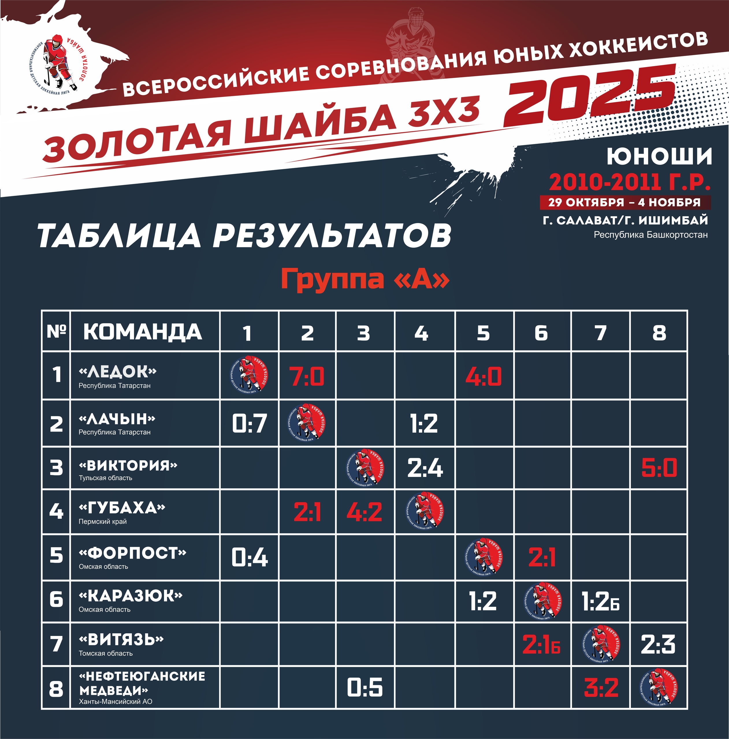 Результаты первого игрового дня Всероссийских соревнований юных хоккеистов «Золотая шайба 3х3» среди команд юношей 2010-2011 г.р.