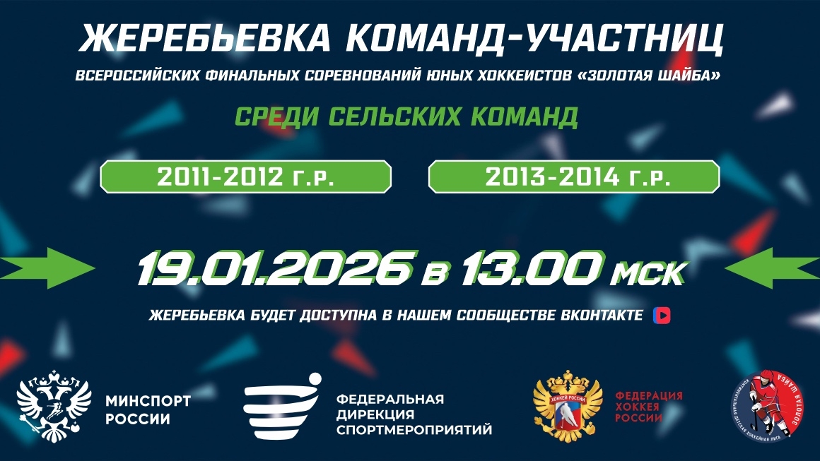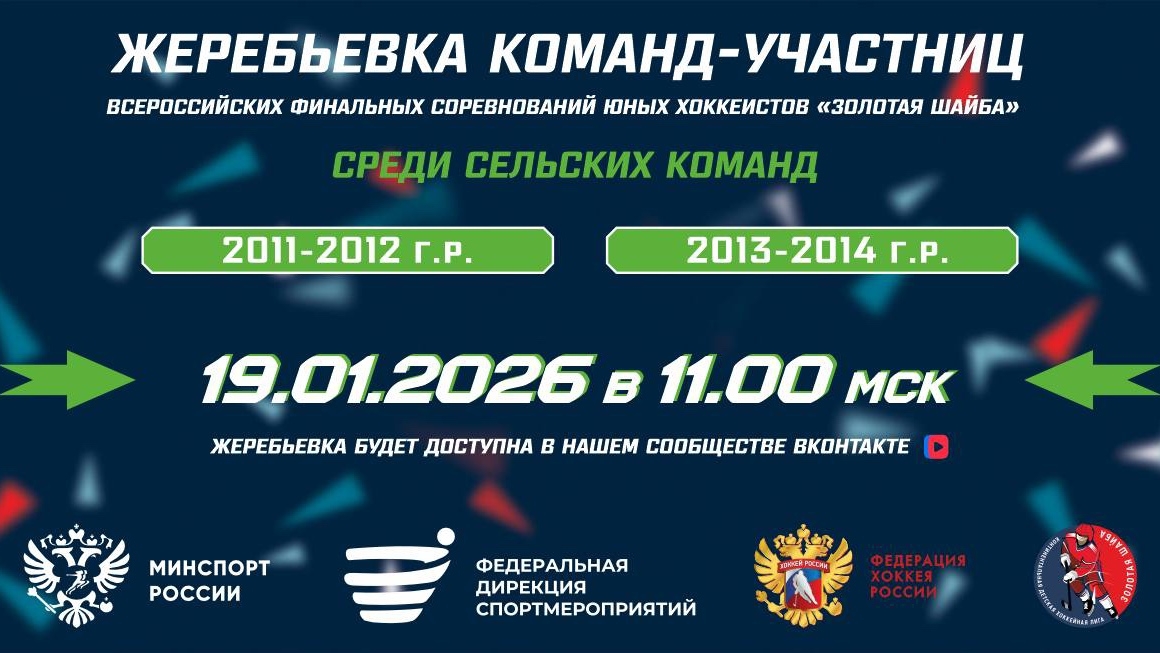 19 января в 11:00 по московскому времени состоится жеребьевка Всероссийских финальных соревнований юных хоккеистов «Золотая шайба» среди сельских команд, которые пройдут в г. Салават/ г. Ишимбай (Республика Башкортостан) Смотрите...