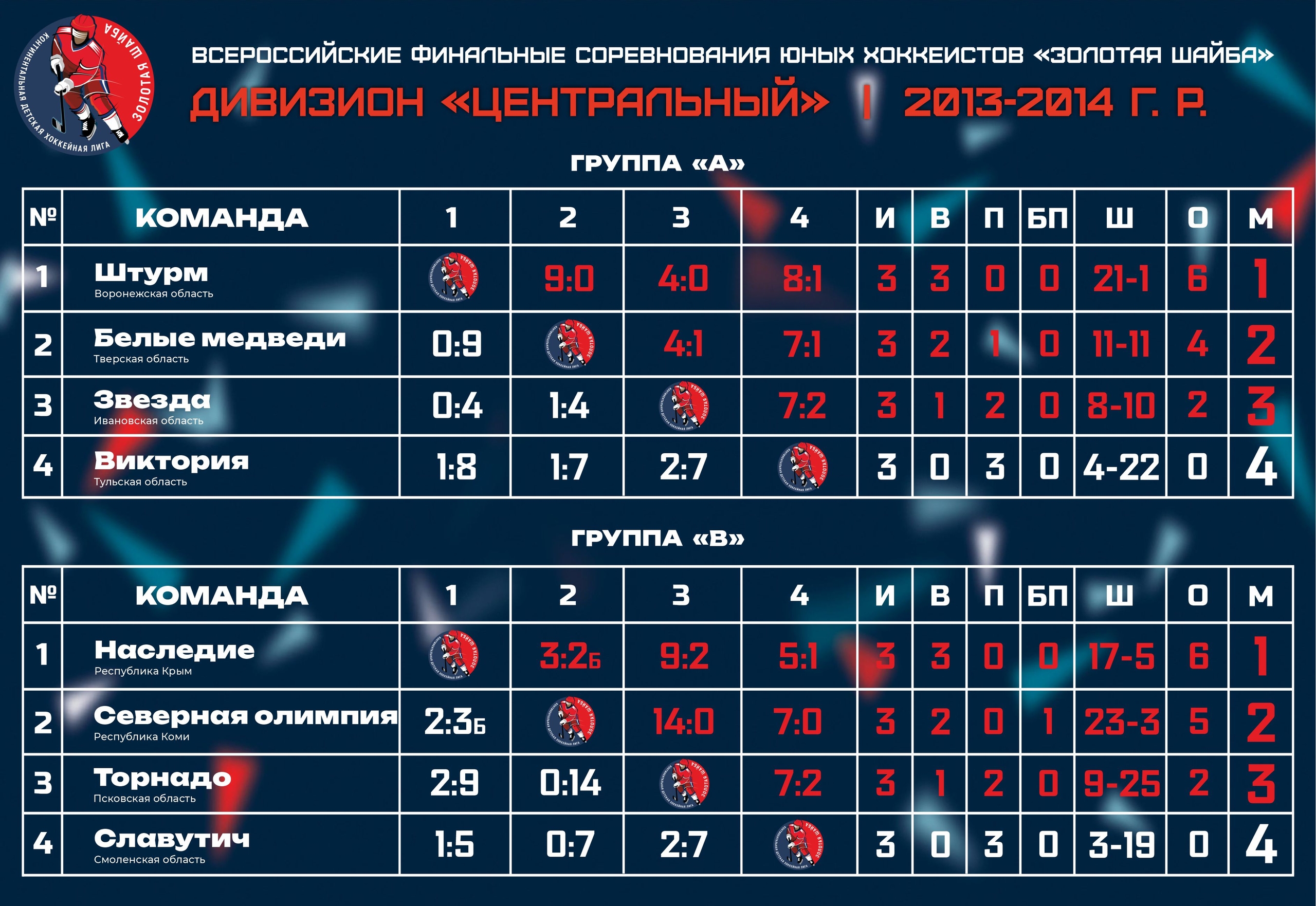 Результаты группового этапа Всероссийских финальных соревнований юных хоккеистов «Золотая шайба» среди 2013-2014 годов рождения, дивизион «Центральный»