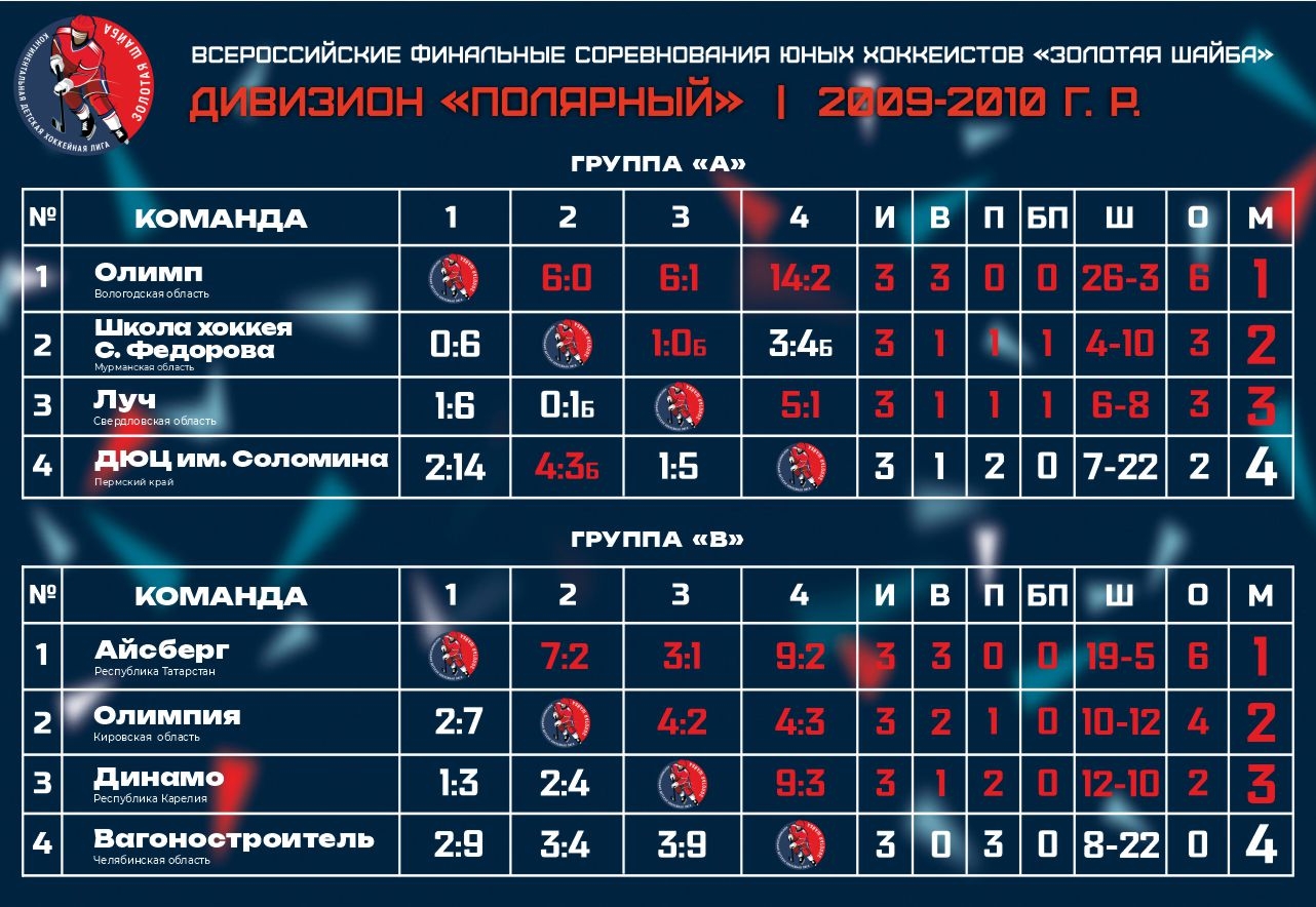 Результаты группового этапа Всероссийских финальных соревнований юных хоккеистов «Золотая шайба» среди 2009-2010 годов рождения, дивизион «Полярный» Мы в МАХ max.ru/join/Rs4Eb… telegram t.me/kdhlgold