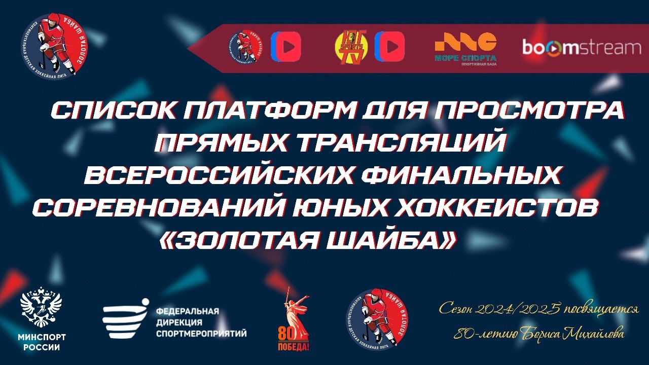 Представляем список платформ, на которых будут осуществляться прямые трансляции матчей Всероссийских финальных соревнований юных хоккеистов «Золотая шайба»