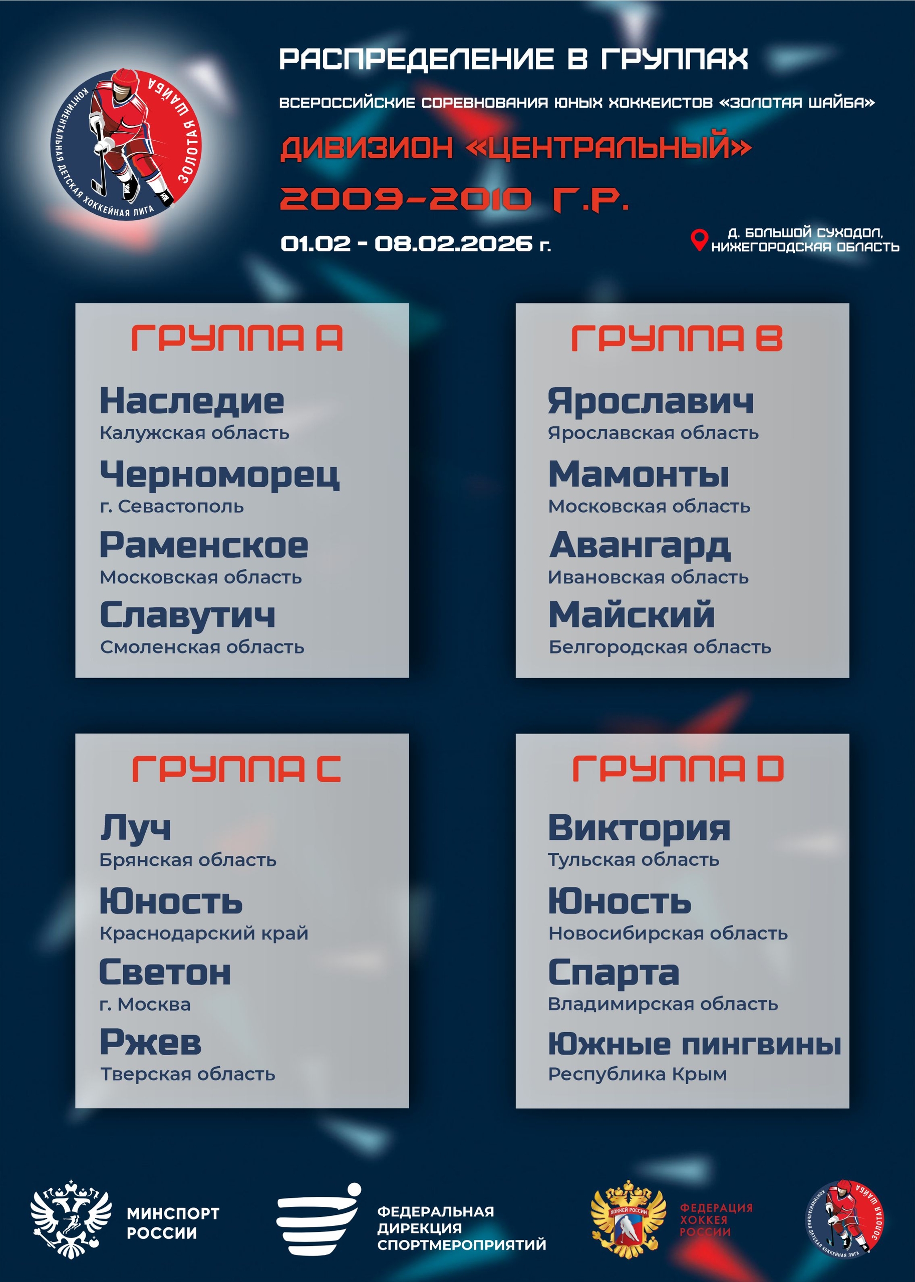 Распределение команд в группах на Всероссийских финальных соревнованиях юных хоккеистов «Золотая шайба» среди команд 2009-2010 г.р., дивизион «Центральный»