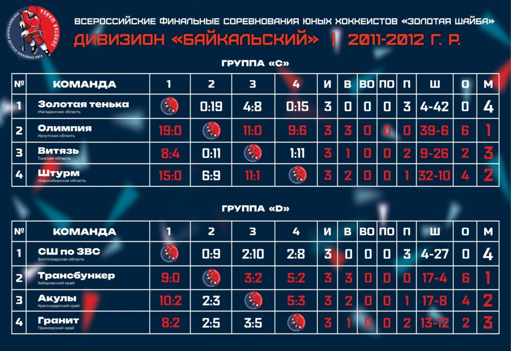 Результаты группового этапа Всероссийских финальных соревнований юных хоккеистов «Золотая шайба» среди 2011-2012 годов рождения, дивизион «Байкальский»