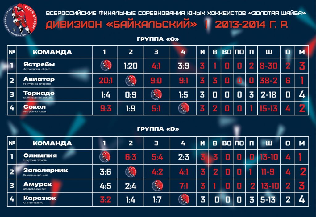 Результаты группового этапа Всероссийских финальных соревнований юных хоккеистов «Золотая шайба» среди 2013-2014 годов рождения, дивизион «Байкальский»