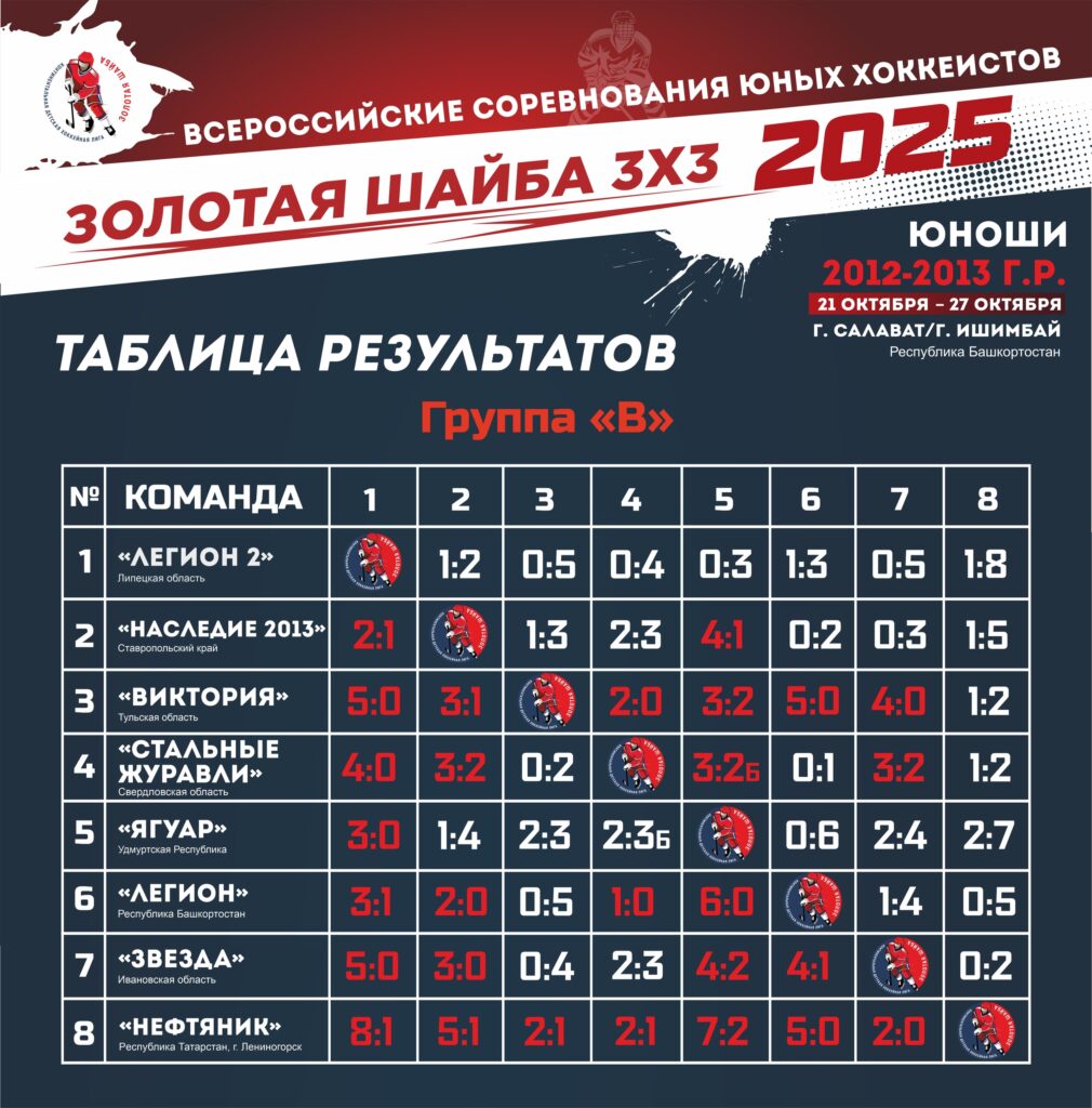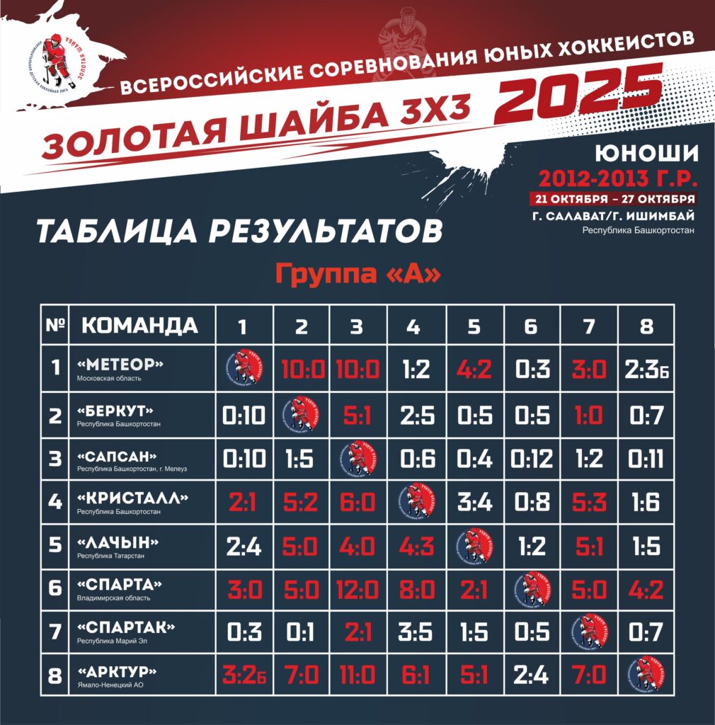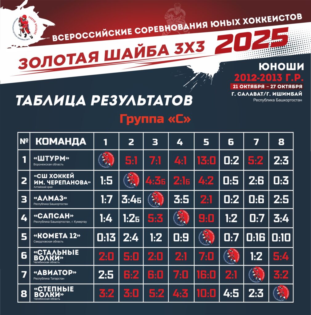 Результаты игр по итогам группового этапа и плей-офф Всероссийских соревнований юных хоккеистов «Золотая шайба 3х3» среди команд юношей 2012-2013 г.р..