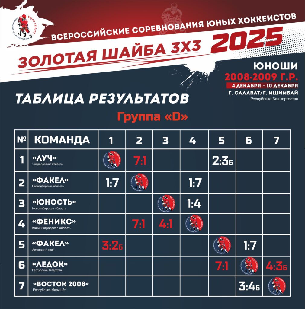 Результаты первого игрового дня Всероссийских соревнований юных хоккеистов «Золотая шайба 3х3» среди команд юношей 2008-2009 гр