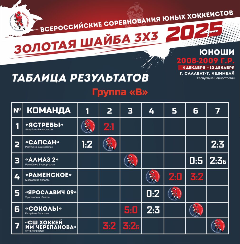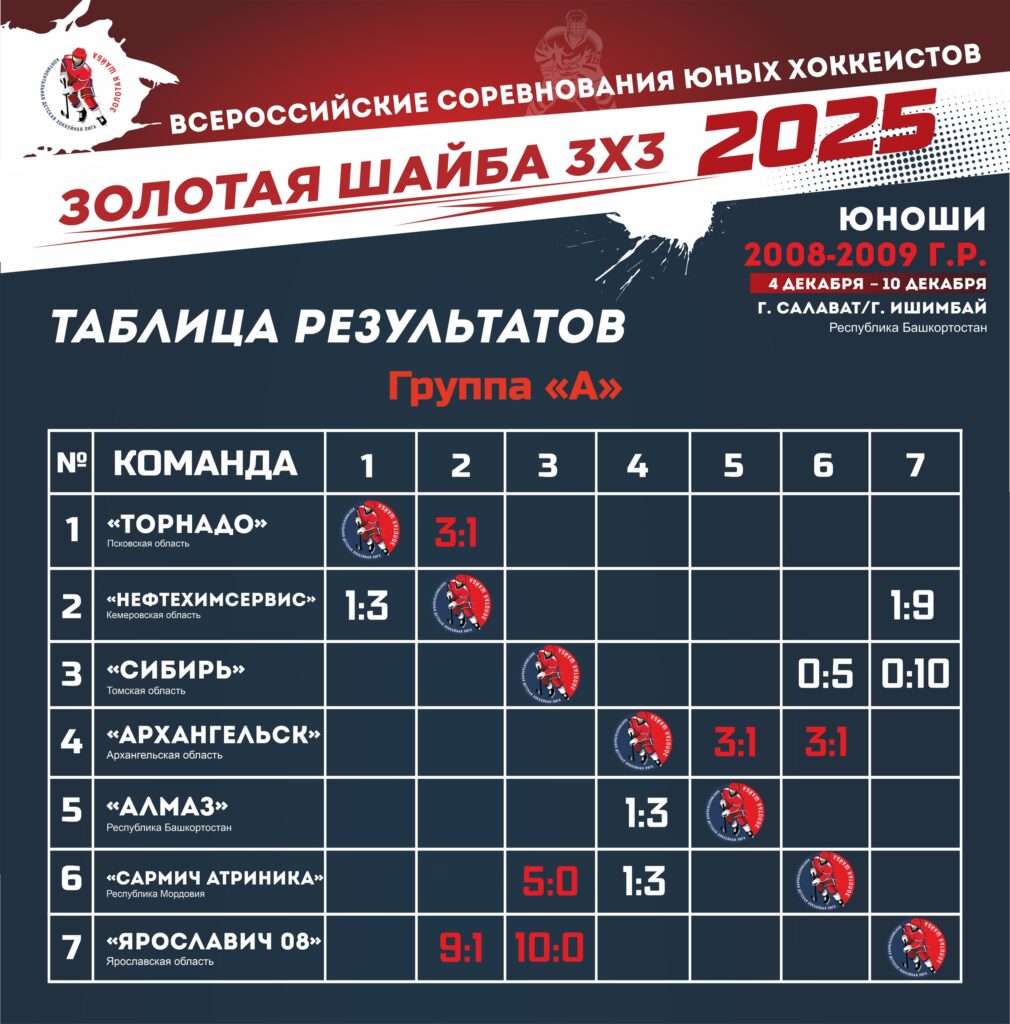 Результаты первого игрового дня Всероссийских соревнований юных хоккеистов «Золотая шайба 3х3» среди команд юношей 2008-2009 гр