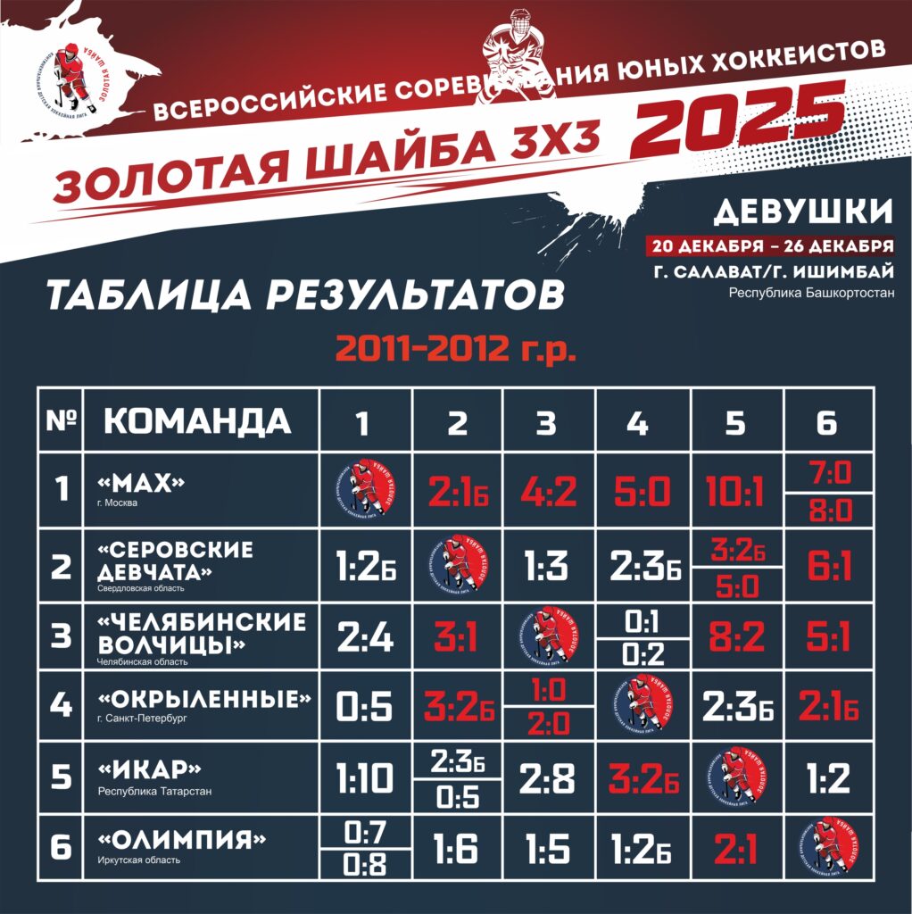 Результаты после трех игровых дней Всероссийских соревнований юных хоккеистов «Золотая шайба 3х3» среди команд девушек
