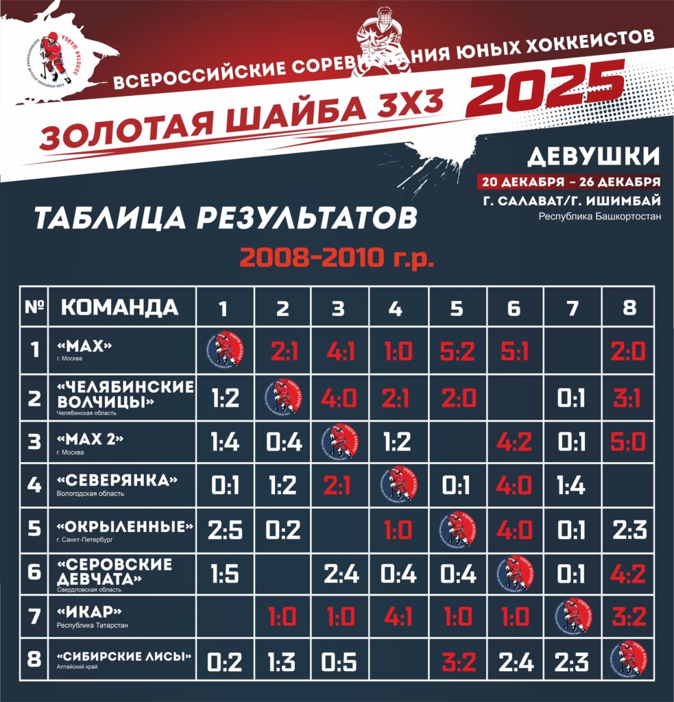Результаты после трех игровых дней Всероссийских соревнований юных хоккеистов «Золотая шайба 3х3» среди команд девушек