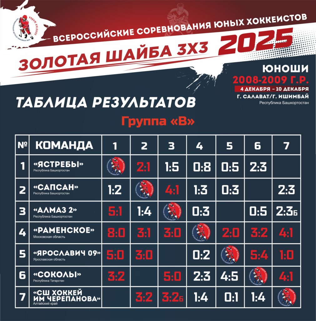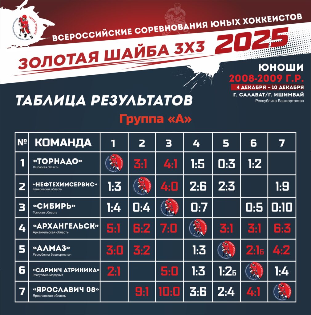 Результаты после трех игровых дней Всероссийских соревнований юных хоккеистов «Золотая шайба 3х3» среди команд юношей 2008-2009 гр